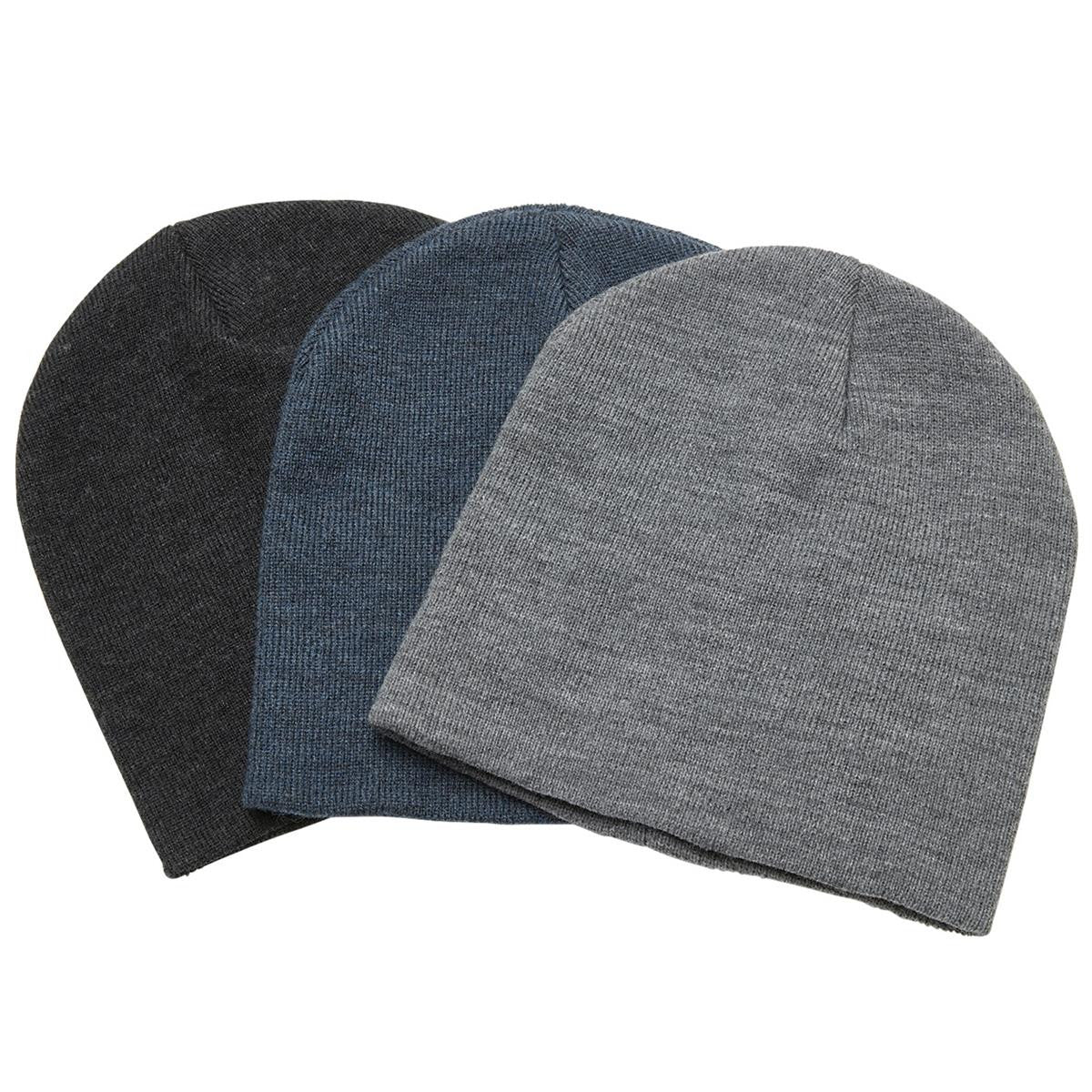 Made from a luxurious blend of 50% acrylic and 50% polyester, this versatile Heather Skull Beanie is a must-have accessory. Its heathered knit design and one-size-fits-most fit make it both stylish and comfortable. Choose from three attractive colorways - Black, Grey, and Navy.